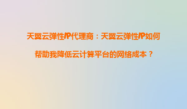 2025-08-20天翼云弹性IP代理商:天翼云弹性IP如何帮助我降低云计算平台的网络成本? 引言 在数字化转型的浪潮下,企业对云计算平台的需求日益增长,而网络成本作为云计算使用中的一大支出,如何有效降低成为...