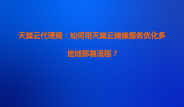 2025-08-17天翼云代理商:如何用天翼云镜像服务优化多地域部署流程? 引言 在当今数字化时代,企业对于IT基础设施的需求日益增长,尤其是在多地域、多区域的业务场景中,如何快速、高效地部署和扩展应...