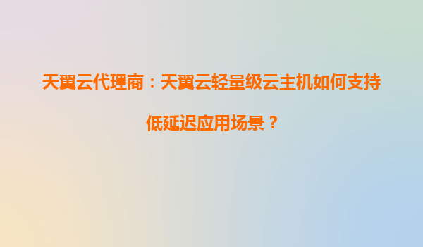 2025-08-15天翼云代理商:天翼云轻量级云主机如何支持低延迟应用场景? 一、低延迟应用场景的行业需求 在数字化浪潮下,低延迟应用场景逐渐成为企业业务的核心诉求。例如在线游戏、金融交易、实时...