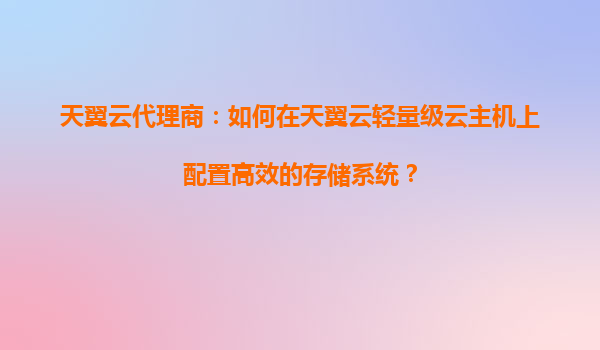 2025-08-15天翼云代理商指南:如何在天翼云轻量级云主机上配置高效的存储系统 一、轻量级云主机的存储需求与挑战 天翼云轻量级云主机凭借其灵活性和成本优势,成为中小企业及开发者的首选。然而,高...