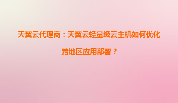 2025-08-15天翼云代理商:天翼云轻量级云主机如何优化跨地区应用部署? 引言 在当今数字化时代,跨地区应用部署已成为企业拓展业务、提升用户体验的重要策略。然而,面对复杂的网...