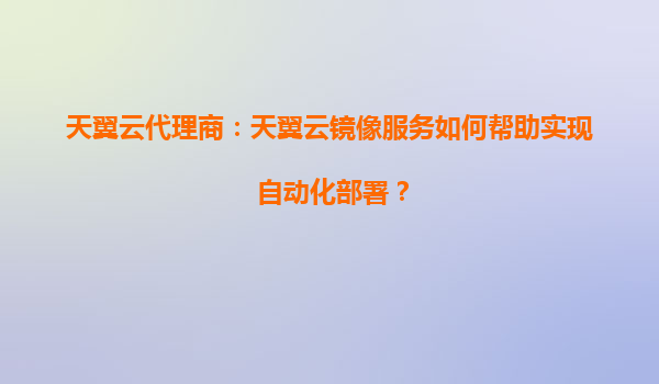 2025-08-12天翼云代理商:天翼云镜像服务如何帮助实现自动化部署? 一、天翼云镜像服务的核心功能与优势 天翼云作为中国电信旗下的云计算服务品牌,其镜像服务(ImageService)是构建自动化部署体系的关键组件。该...