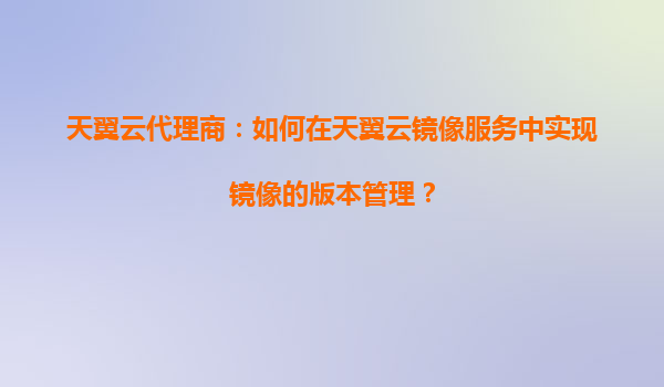 2025-08-13天翼云代理商:如何在天翼云镜像服务中实现镜像的版本管理 一、天翼云镜像服务概述 天翼云是中国电信旗下的云计算服务品牌,提供稳定、安全、高效的云服务解决方案。其中,镜像服务是天翼云的重要功能之一...