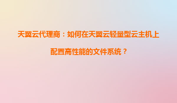 天翼云代理商指南:如何在天翼云轻量型云主机上配置高性能文件系统 一、天翼云轻量型云主机的核心优势 天翼云轻量型云主机凭借其弹性扩展、高性价比和深度安全防护能力,为中小企业及开发者提供了理想的云基础...