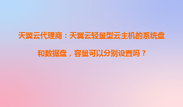2025-10-30天翼云代理商解析:天翼云轻量型云主机的系统盘与数据盘容量设置独立性的优势 一、轻量型云主机的核心需求与天翼云解决方案 随着企业数字化转型加速,轻量级业务场景对云主机的灵活性和成本效益要求日...