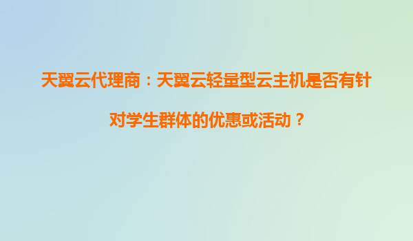 2025-10-30天翼云代理商:天翼云轻量型云主机是否有针对学生群体的优惠或活动? 一、天翼云轻量型云主机的核心优势 天翼云作为中国电信旗下云计算品牌,轻量型云主机凭借以下优势成为学生群体的理想选择: 高性价...
