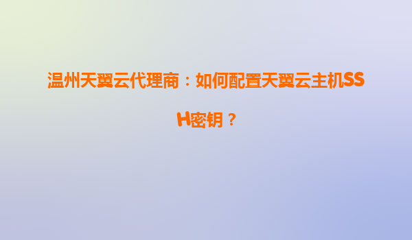2025-08-05温州天翼云代理商:如何配置天翼云主机SSH密钥? 一、天翼云与代理商的优势 天翼云作为中国电信旗下的云计算服务品牌,凭借其强大的基础设施、稳定的网络环境和丰富的产...