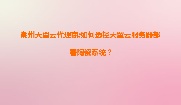 2025-08-02潮州天翼云代理商:如何选择天翼云服务器部署陶瓷系统? 引言 在数字化转型浪潮下,陶瓷行业通过云计算技术实现生产、管理、销售的智能化升级已成趋势。作为潮州天翼云...
