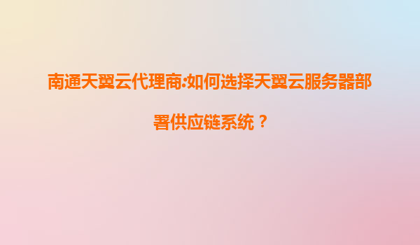 2025-07-28南通天翼云代理商:如何选择天翼云服务器部署供应链系统? 在数字化转型的浪潮中,供应链系统的云端部署已成为企业提升效率、降低成本的关键选择。作为南通地区天翼云的核心代理商,我们深知企业在选择云服务器...