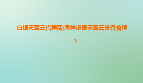 2025-07-16白银天翼云代理商:天翼云设备管理设置指南 一、天翼云设备管理概述 天翼云作为中国电信旗下的云计算服务品牌,提供包括云主机、存储、网络在内的全方位云服务解决方案。设备管理是天翼...