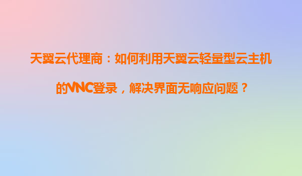 2025-10-28天翼云代理商:如何利用天翼云轻量型云主机的VNC登录,解决界面无响应问题? 一、天翼云轻量型云主机的核心优势 天翼云作为中国电信旗下的云计算品牌,其轻量型云主机凭借以下优势成为中小企业及开发者的首...