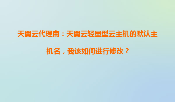 2025-10-28天翼云代理商:天翼云轻量型云主机默认主机名修改指南 天翼云轻量型云主机的优势与特点 天翼云作为中国电信倾力打造的云计算服务品牌,凭借其强大的基础设施和丰富的行业积淀,在云计算领域占据了重要地位...