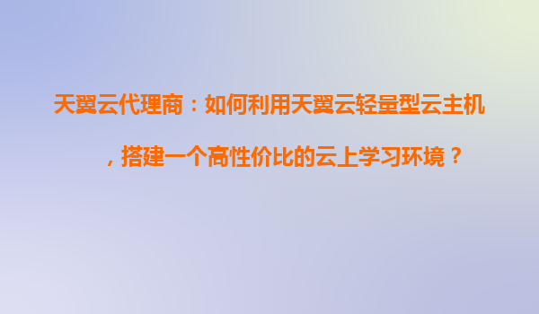 2025-10-28天翼云代理商指南:如何利用天翼云轻量型云主机搭建高性价比云上学习环境 一、天翼云轻量型云主机的核心优势 作为中国电信旗下的云计算服务品牌,天翼云轻量型云主机凭借以下优势成为搭...