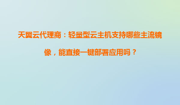 2025-10-28天翼云代理商:轻量型云主机支持哪些主流镜像,能直接一键部署应用吗? 一、天翼云轻量型云主机简介 天翼云作为中国电信旗下的云计算服务品牌,凭借运营商级资源和技术优势,为企业及开...