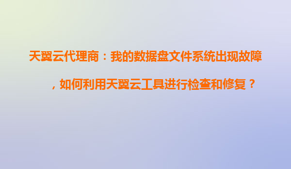 天翼云代理商:我的数据盘文件系统出现故障,如何利用天翼云工具进行检查和修复? 一、天翼云在数据存储与故障处理中的核心优势 作为中国电信旗下的云服务品牌,天翼云在数据存储领域具备以下显著优势: ...