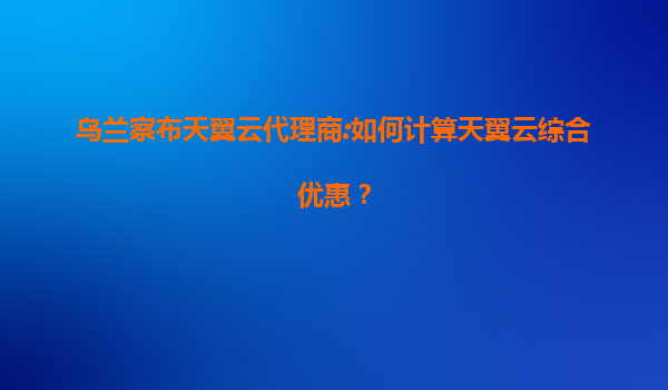 2025-07-14乌兰察布天翼云代理商:如何计算天翼云综合优惠? 一、天翼云的优势与代理商的价值 天翼云作为中国电信旗下的云计算品牌,凭借央企背景、全国覆盖的数据中心资源以及高安全性等特点,在...