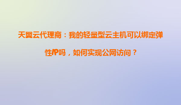 2025-10-27天翼云代理商指南:轻量型云主机如何绑定弹性IP并实现公网访问 一、轻量型云主机与弹性IP的关系 天翼云的轻量型云主机(Lighthouse)是为中小企业及开发者提供...