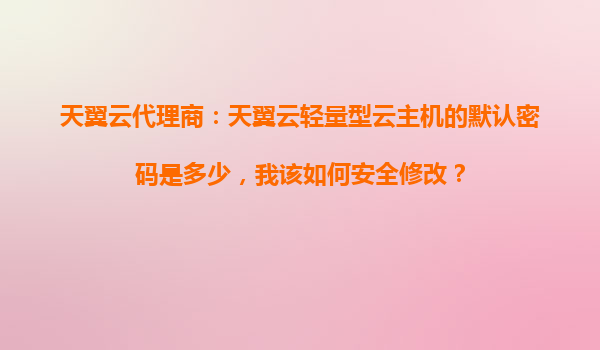 2025-10-27天翼云轻量型云主机默认密码及安全修改指南 一、天翼云轻量型云主机的默认密码 天翼云轻量型云主机在创建时,系统会为每个实例生成一个随机初始密码,并通过控制台或短信方式发送给...