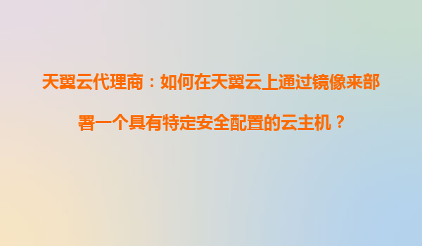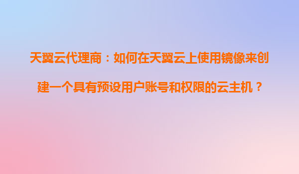 天翼云代理商:如何在天翼云上使用镜像创建预设账号的云主机 一、天翼云镜像与代理商的核心优势 天翼云作为中国电信旗下云计算品牌,提供安全可靠的云服务基础设施。通过天翼云代理商部署业务,用户可...