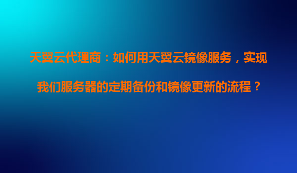 2025-10-26天翼云代理商:如何用天翼云镜像服务实现服务器定期备份与镜像更新 一、天翼云镜像服务的核心优势 作为中国电信旗下云计算服务商,天翼云镜像服务具备以下优势: 高可靠性:基于分布...