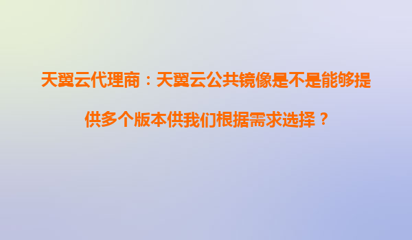 2025-10-27天翼云代理商:天翼云公共镜像是否支持多版本选择? 一、天翼云公共镜像的多版本支持 天翼云作为中国电信旗下的云计算服务品牌,其公共镜像库确实提供了多个版本的操作系统和软件环境,以满足不同用户...
