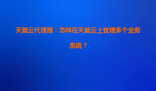 天翼云代理商:如何高效管理多个业务系统? 引言 随着企业数字化转型的加速,越来越多的业务系统需要上云。作为天翼云代理商,如何帮助客户在天翼云上高效管理...