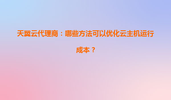 2025-07-05天翼云代理商:优化云主机运行成本的五大策略 合理选择云主机配置 天翼云提供灵活的云主机配置选项,用户可根据业务需求选择适合的CPU、内存和存储资源。通过精准匹配业务负载,避免资源浪费。例如,对于流...