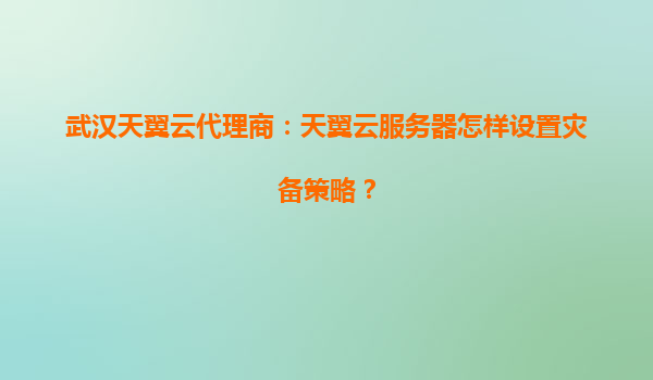 2025-07-03武汉天翼云代理商:天翼云服务器怎样设置灾备策略? 一、天翼云服务器的灾备重要性 随着企业数字化转型加速,业务连续性保障成为关键。天翼云作为中国电信旗下的云服务品牌,提供高可靠的灾备解决方案,帮助武...