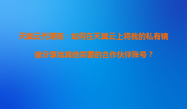 天翼云代理商指南:如何安全高效地分享私有镜像给合作伙伴 一、前言:天翼云的协作优势 在数字化转型浪潮中,天翼云作为中国电信旗下云服务品牌,凭借安全合规、高速网络和本地化服务优势,成为企业上...