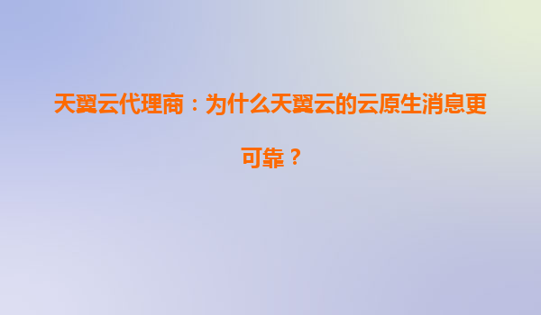 2025-06-22天翼云代理商解读:为什么天翼云的云原生消息服务更可靠? 在数字化转型浪潮中,消息队列作为分布式系统的"中枢神经",其可靠性直接决定业务连续性。作为中国电信旗下的云计算服务商,天翼云凭...