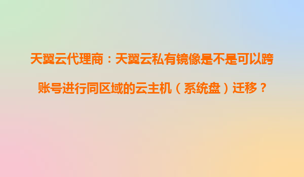 2025-10-24天翼云代理商:天翼云私有镜像跨账号迁移能力解析 什么是天翼云私有镜像 天翼云私有镜像是用户基于云主机系统盘创建的个性化镜像文件,包含操作系统、预装软件及配置信息。与公共镜像相比,私有镜像可...