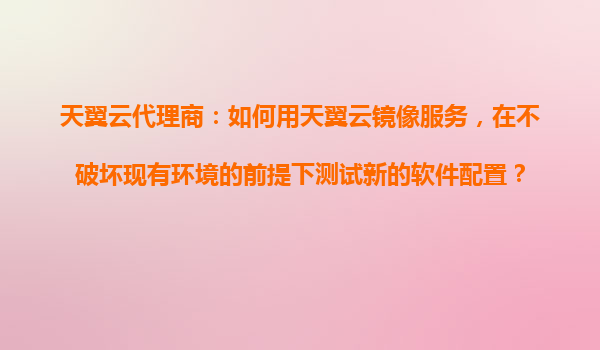 2025-10-24天翼云代理商:如何用天翼云镜像服务在不破坏现有环境的前提下测试新的软件配置? 引言 在企业IT运维中,测试新的软件配置是一项常见需求。然而,如何在保证生产环境稳定性的同时,安全地完成测试任务却是...