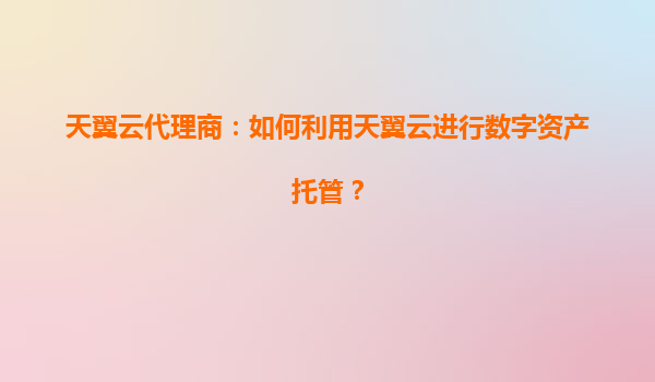 2025-06-17以下是根据要求生成的HTML格式文章,内容聚焦于天翼云代理商如何利用天翼云实现数字资产托管: 天翼云代理商:如何利用天翼云实现高效数字资产托管 一、数字资产托管的战略价值 在...