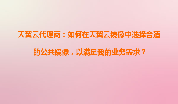 天翼云代理商指南:如何在天翼云镜像中选择合适的公共镜像,以满足业务需求? 一、天翼云公共镜像的核心优势 天翼云作为中国电信旗下的云计算服务品牌,其公共镜像库具备以下差异化优势: 国...