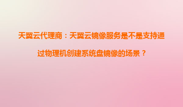 2025-10-24天翼云镜像服务:物理机创建系统盘镜像的可行性及优势解析 一、天翼云镜像服务核心功能概述 天翼云镜像服务作为云计算基础设施的关键组件,为用户提供包括系统盘镜像、数据盘镜像和整机镜像在内的全场景镜像能...