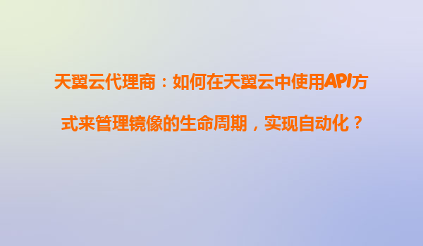 2025-10-24天翼云代理商:如何在天翼云中使用API方式管理镜像生命周期,实现自动化? 一、天翼云API管理的核心优势 天翼云作为中国电信旗下的云计算服务品牌,其API体系在安全性、稳定性和国产化适...
