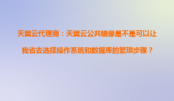 2025-10-24天翼云公共镜像——简化上云部署的智能选择 公共镜像:一键解决基础环境配置难题 在天翼云平台部署业务时,传统方式需要手动选择操作系统版本、数据库类型及配套软件,步骤繁琐且容易出错。而天翼云公共镜...