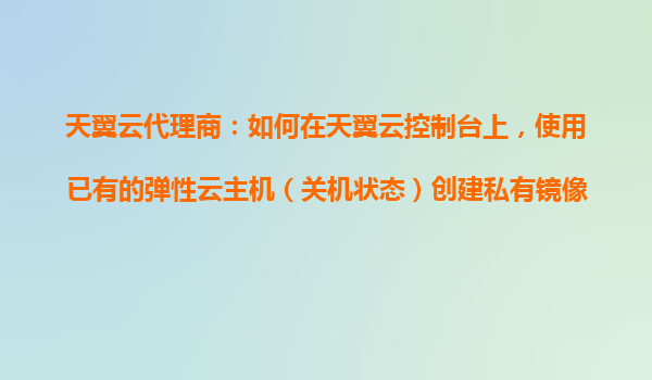 2025-10-24天翼云代理商指南:如何通过控制台使用关机状态的弹性云主机创建私有镜像 一、天翼云的核心优势 在开始操作指南前,首先了解天翼云的三大核心优势: 安全可靠:依托中国电信国家级基础设...