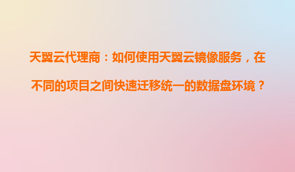 2025-10-24天翼云代理商指南:如何使用天翼云镜像服务实现跨项目数据盘环境快速迁移 一、引言 在企业多云架构或复杂项目开发中,如何高效迁移统一的数据盘环境成为关键需...
