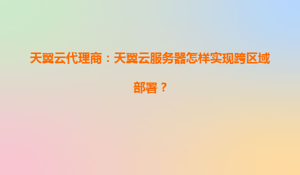 2025-06-14天翼云代理商:如何高效实现天翼云服务器跨区域部署 在数字化时代,企业业务常需覆盖不同地域的用户群体,跨区域部署云服务器成为提升服务质量和业务连续性的关键策略。作为中国电信旗下的云计算服务商,天翼云...