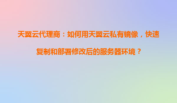 2025-10-23天翼云代理商指南:如何利用私有镜像快速复制和部署服务器环境 一、天翼云私有镜像的核心价值 天翼云私有镜像是用户自定义的服务器环境模板,包含操作系统、预...