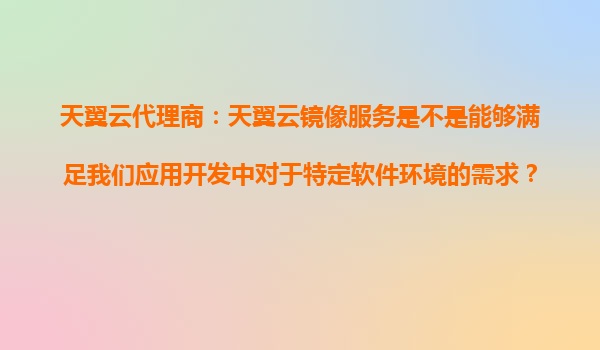 2025-10-24天翼云代理商:天翼云镜像服务能否满足应用开发中特定软件环境的需求? 1.什么是天翼云镜像服务? 天翼云镜像服务(CloudImageService)是天翼云提供的一项基础服务,它允许用户通过预配置的操作系统、...