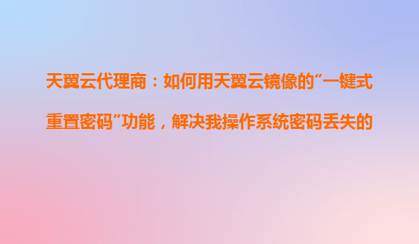 天翼云代理商指南:如何用天翼云镜像“一键式重置密码”功能解决操作系统密码丢失问题 一、问题背景 在日常运维中,操作系统密码丢失是常见问题。传统处理方式需通过控...