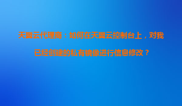 2025-10-23如何在控制台上修改私有镜像信息 作为天翼云代理商,私有镜像的灵活管理是业务高效运行的关键。天翼云控制台提供了直观便捷的私有镜像修改功能,帮助您快速完成信息更新。以下为详细操作步骤: 登录天翼云控制台 ...