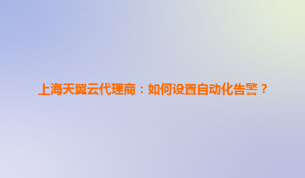 2025-06-08上海天翼云代理商指南:如何高效设置自动化告警系统 一、自动化告警:云时代的安全守护者 在数字化转型加速的今天,企业上云已成为必然选择。随着业务系统复杂度的提升,自动化告警机制...