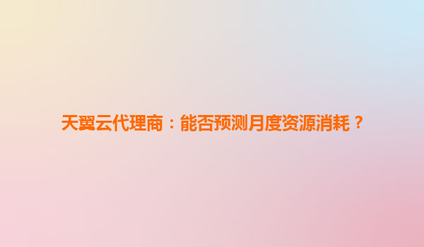 2025-06-06天翼云代理商:能否预测月度资源消耗? 引言:预测能力——代理商的战略刚需 在云计算服务领域,资源消耗预测直接关系到代理商的运营成本与客户满意度。作为天翼云代理商,能否精准预判客户下月的计算、存储...