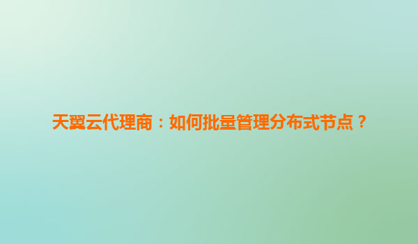 2025-06-04天翼云代理商:如何高效批量管理分布式节点 分布式节点管理的核心挑战 在混合云与边缘计算普及的今天,企业常常面临数百甚至数千个分布式节点的管理难题:节点分散导致配置效率低下、安...