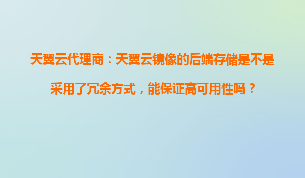天翼云镜像的后端存储冗余设计与高可用性保障分析 一、天翼云代理商服务体系的核心优势 作为中国电信旗下云计算服务商,天翼云通过代理商体系提供本地化服务支持,其核心优势体现在: 运营商...