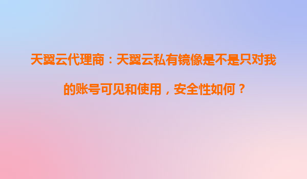 2025-10-23天翼云私有镜像安全性解析:仅对您的账号可见使用的优势 在云计算时代,数据安全和隐私保护是企业上云最关心的问题之一。天翼云作为中国电信旗下的云计算品牌,凭借其强大的基础设施和严格的安全管理体系,为企...
