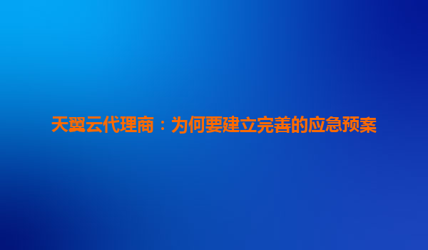 2025-05-29#天翼云代理商应急预案建设的重要性 下面是根据要求撰写的关于天翼云代理商建立完善应急预案的文章: 在当今高度数字化的商业环境中,云计算服务已成为企业运营的核心基...